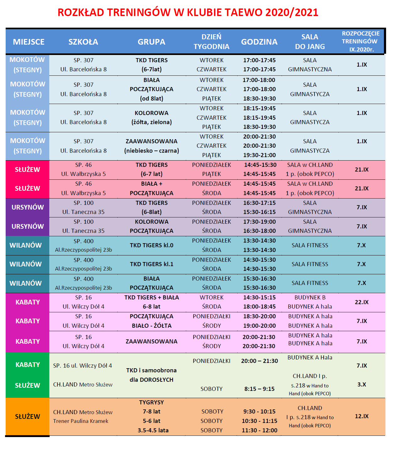 Od godz. 18:00 – 19:30 grupa dzieci ( poprzednio godz. 18.30 -19.30 i od 19.30-20.30 )